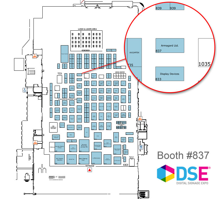 Located at booth 837 (Between the Taiwan Pavilion and Media Center – see map below), Armagard will have a range of enclosures on display and will be demonstrating the flexibility of their outdoor digital signage solutions.