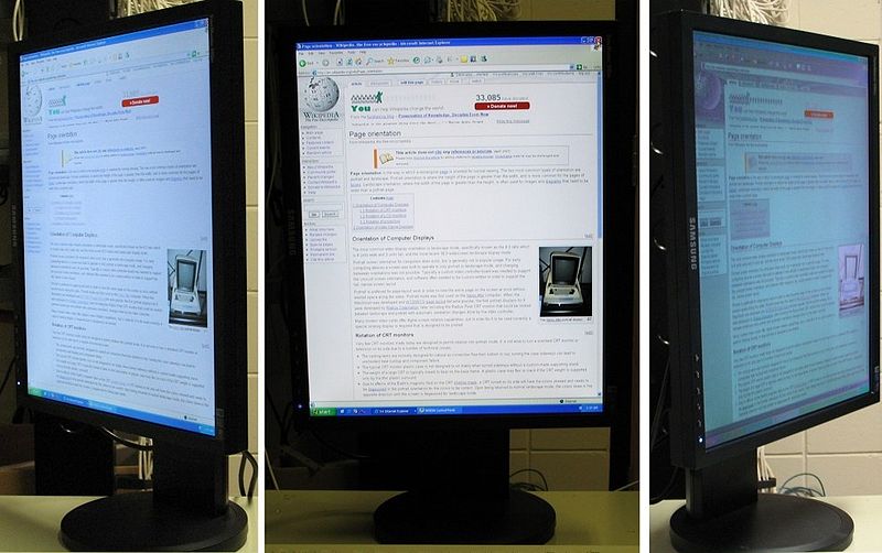 However, it must be noted that LCD screens, while they can be easily orientated to portrait mode there can be a loss of resolution and brightness, particularly from viewing from the side as the light polarization technology of an LCD monitor is designed to run vertical.